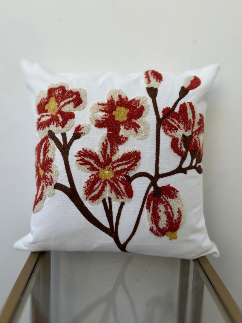 Funda bordada para cojín de 45×45cm, 100% algodón con diseño floral. Aporta estilo, textura y un toque colorido a tu hogar. Ideal para renovar sofás, camas o sillones con elegancia y calidez.